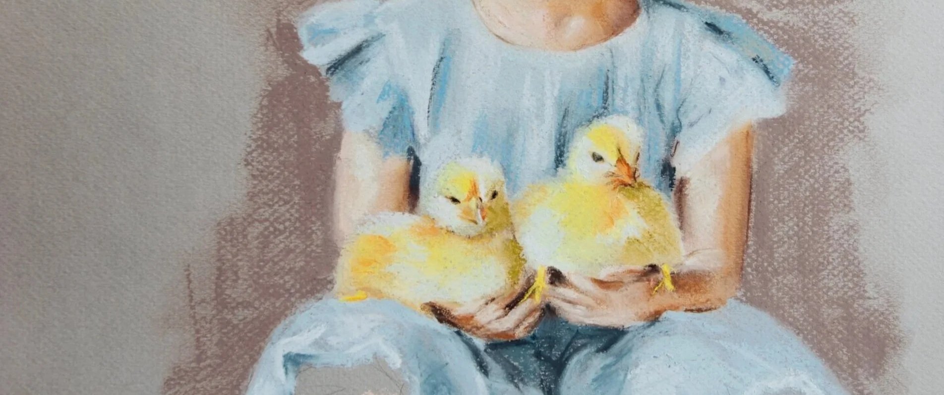 Portraiture has always been my absolute favorite subject in any medium so when I got out the paints in 2023 I naturally started to sketch and paint photos I had taken of my kids over the last year or so! I’ve now expanded that journey into open commissions with pastels and paints! It’s been a long time coming, but honestly I should have known that’s where my heart is back in 2011 when I took a portraiture class at SCAD and worked harder in that class than any other at the time.
